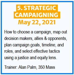 Skilling Up for Climate Action is a series of five FREE online 1.5 hour trainings for members of the 350 group network to ground us in shared principles and empower us to take bolder and more strategic action. An optional 30-minute reflection on training techniques will follow each training.